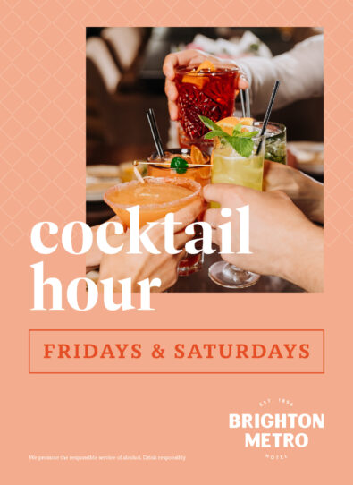 A true Brighton icon, the Metro’s got something for everyone. Load up your plate at Charlie’s Diner, chill out in the sunny beer garden, or catch every big game in the Sports Bar with a cold one in hand. Whether it’s a midweek family dinner, a cheeky cocktail night with mates or a lazy Sunday session, there’s always something happening.
