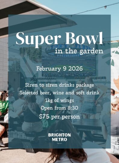 The Brighton Metro’s Sports Bar is your local home of sport, with all the big games live and loud across massive screens, cold pints flowing, and the best atmosphere south of the city. Whether you’re backing your team, having a crack on the TAB, or just in for a post-work pint, you’ll find good mates, great banter and classic pub feeds right here. It’s Brighton’s best seat in the house for every big game.