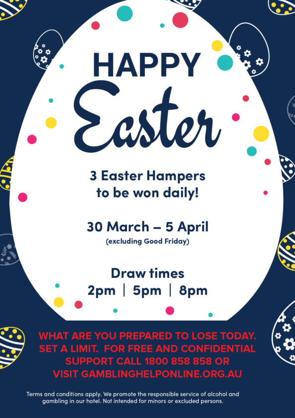 Join us at Charlie’s for our Easter Egg Hunt, face painting and a visit from the Easter Bunny!